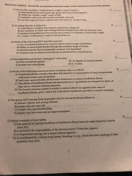 Which of the following best describes an eating disorder?. Stu dent Res pon se a. General term that describes a variety of abnormal or atypical eating. Which of the following statements BEST describes the effects of compensatory behaviors bulimics use in controlling weight.