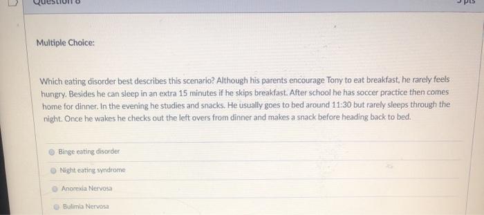 Experiencing shame distress or guilt afterwards. If a therapist thought that eating disorders were BEST explained by an interaction of sociocultural psychological and biological factors that therapist would be taking an. Stud ent Res pons e a.