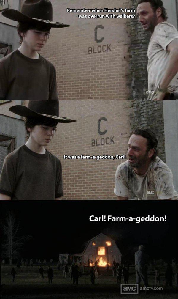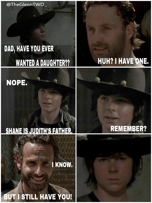 The shows protagonist Rick Grimes and his son Carl were introduced in Season 1 Episode 1 of The Walking Dead titled Days Gone Bye which originally aired on October 31st 2010. - Rick Grimes The Walking Dead-----Voiceovers by Brock Baker. Jun 28 2017 - Explore Robert Barringers board carl jokes on Pinterest. Is a military meme that usually is scene that depicts some military situation sometimes its a funny mess up or just a picture that involves the military. See more ideas about walking dead funny walking dead memes walking dead jokes. Carl is in the 10th year of a life sentence when he gets a new cellmate Jim. All Memes Rick and Carl.