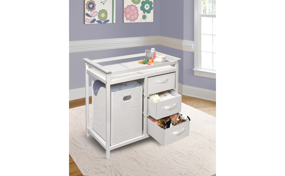 Buy top selling products like Badger Basket Modern Baby Changing Table with Hamper and 3 Baskets and carters by. It has six open shelves to keep baby soaps powders shampoos and towels. An all-in-one station for quick diaper and clothing changes as you head out for a fun day with your infant.
