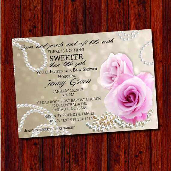 - Photo Gallery at Catch My Party. Diamonds Pearls High Heel Little Lady Baby Shower Invitation. Design your Pearl baby shower invitations with Zazzle.